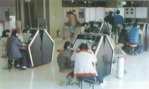 中野サンプラザはネーミングも今風に(「勤労青少年」よりも「ヤング」を強調)にして、コンサートホール、ホテル、プール、ボウリング場、スポーツジム、オーディオルーム、図書室、サークル、「人生相談」まで、至れり尽くせり。ただスポーツジムの光景など、やってることがなんだかおかしい。令和世代がびっくりしたのは、オーディオルームに集まった若者たちが、みんなうつむきながらクラシックやジャズなどを聴いていることだ。まあ名曲喫茶やジャズ喫茶ののりなんだけどね。