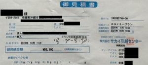 これに女性が必死で抵抗し、「人が来る」と言い続けると、ようやく諦め、「また来るね」と捨て台詞を吐いて立ち去ったという。(右横写真=被害女性とサカイ引越センターとの「見積書」)