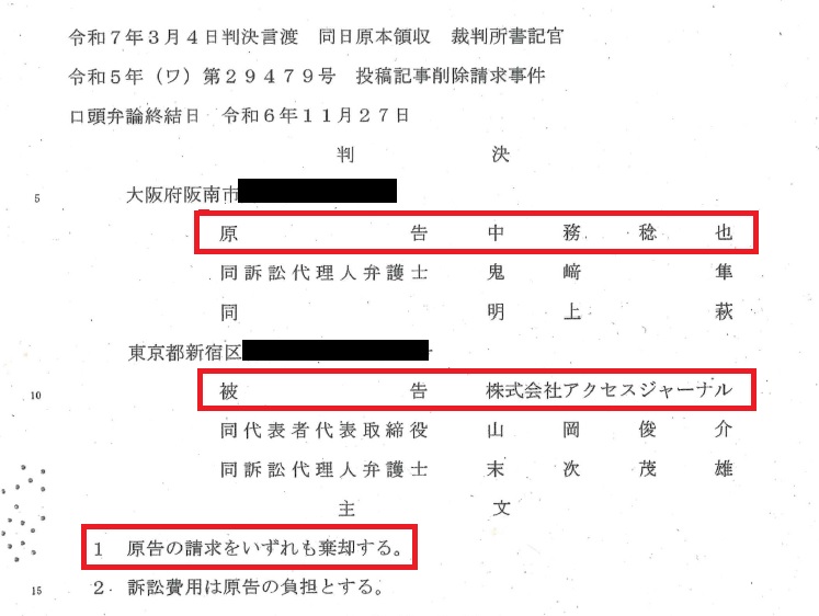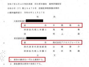 本紙は仮処分も含め、この中務氏に計7件訴えられたが、最も重要な訴訟が本件。後、2件の本訴訟が残っている。