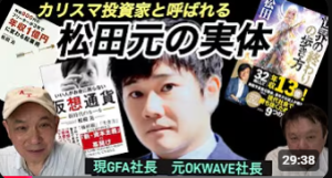 そもそも「情報商材屋」ではないかとの疑惑さえ出ている松田氏が、なぜ、上場企業の代表になったり、上場企業の増資引受ができるのか? 今回、自分がかつて代表をしていたオウケイウェイヴの増資を引き受けた本当の狙いは何なのか? 数々の過去のエピソードも交え、出来る限り踏み込んで解説した。(*ココをクリックすれば観える。無料)