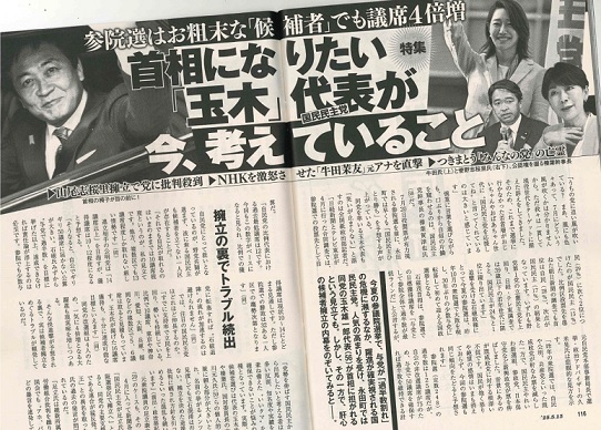 今回報じるのはその件ではなく、そうした報道姿勢からか、今度は玉木雄一郎代表自身に関する情報が永田町筋からもたらされた。