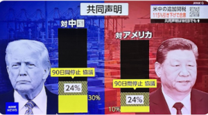 ところが週明け月曜日のPM4時。米中関税交渉は90日間限定ではあるものの大きな成果が出た。このまさかの展開に筆者は激しく動揺し「間違ったら損切する」というトレードの原則を理解しているのに、損切りできなかった。この脳みそフリーズ癖であるが、筆者の個人的な弱さなのだろう。1年に何度かはこういうトレードをしてしまう。