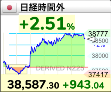 先週金曜日の日経平均株価の終値は、37,754円と前稿比+251円(※前項比+672→+1125→ +976→ +1144→ ▲195→ ▲3339→ ▲557→ +624 →+166 →▲269→▲1621→ ▲372→ +362→ ▲785→▲360→+1481→▲739→▲705→+193円(大納会)の上昇となった。そして日経平均先物は、37,800円で引けている。米国市場の引け後にムーディーズによる米国債の格下げがあって急落したようだ。