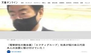 安藤氏の辞任は「一身上の都合」とされるが、文春が安藤氏にアテ取材した結果、記事が出ることを知り、先手を打って報道前に辞任したのが真相だろう(エフティグループは15日、報道内容につき、調査を含め適切に対応するが、会社として関与した事実はないとIRしている)。