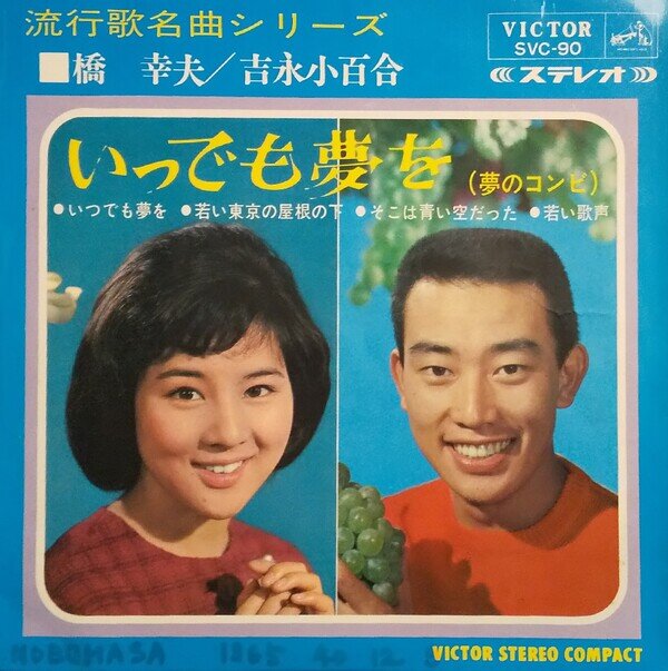 4人のなかでも年長でデビューも早く、アイドルっぽくない近所の兄ちゃん風の橋幸夫は、最初のヒット曲は「潮来笠」だけど、吉永小百合(まだ高校生)とのデュエットでおなじみの「いつでも夢を」(62年のレコード大賞)が大ブレイクで、青春歌謡史上の名曲となった。映画も観たけど、下町で働く勤労青年・少女たちの前向きドラマがなんともけなげだ。橋幸夫はその後、「あの娘と僕(スイム・スイム・スイム)」とか「恋のメキシカンロック」とか、クロスオーバー的ポップ歌謡にも挑戦して、昭和歌謡史に輝く歌手となった。