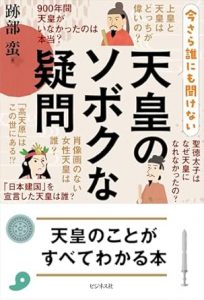 本紙・山岡の記者仲間、同時に、歴史作家・歴史研究家(日本史学の博士後期課程修了)でもある跡部蛮氏は、この新書『天皇のソボクな疑問』(ビジネス社)で、意外に知られていない日本史における天皇のあり方について、様々な角度から解き明かしている。