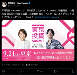 1つ目は、すでに終わったことだが、昨年9月、「KAZMAX」を名乗る者(本名・吉澤和真)と一緒に投資セミナーを開いていた事実。