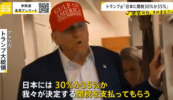 そもそも日本は参院選を7月20日に控えていることで、米国との関税交渉が進展するわけがなく、トランプも日本の実情を考慮しないだろうから、やはり大きな逆風となるだろう。週明けの日経平均は下がって始まった上に、この問題の決着が見えないとジリ下げが止まらなそうだ。