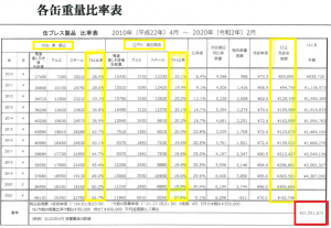 ところが、江戸川渡辺商店は缶類でいえば、単価の高いアルミ缶の比率を少なく申告(逆にいえば、単価の安いスチール缶を多く申告)し、その分、渋谷区から多くの処理費をもらっていた。(*一般にアルミとスチール缶の比率は半々だが、江戸川渡辺商店はアルミが25%ほどに過ぎない=横写真)
