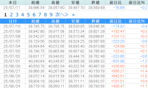 トランプ大統領の強引な関税政策発言によって、株価指数のボラティリティーが上がっているものの、いまのところ大崩れする気配はなく日経平均先物は39,480円で引けている。