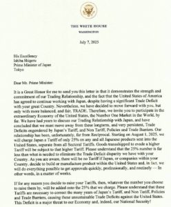 7日には、日本や韓国という同盟国に対しても25%の追加関税を付加すると表明しているし、関税率未定国にも10-20%の追加関税をかける方針らしく、これまでの一律10%部分を足すと合計で20%-25%、4月2日の解放の日を越えるシャレにならないレベルの高関税率になっているのだ。