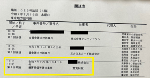 閲覧制限のため、裁判資料を閲覧することもできないので、第1回弁論時に傍聴すればこの事件の概要がわかると思ったのだが、結論をいえば、わずか15分程度の事務手続きだけだった。