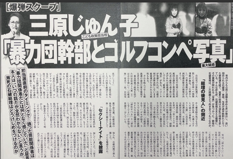 本日発売の『週刊ポスト』(8月22日号。小学館)が、4Pの特集で、三原じゅん子・こども政策担当相(参議院議員当選3回)と、暴力団幹部(当時)とのツーショット写真を取り上げている。