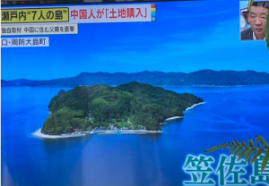 これに対し、周囲4㎞ほどの今回話題になっている笠佐島(人口7人)の近くには米軍岩国基地、海上自衛隊呉基地、伊方原発などあり、一番近い重要施設からでも20㎞以上離れており対象外。そして現行法では、中国人が不動産を買うことは何ら問題ない。