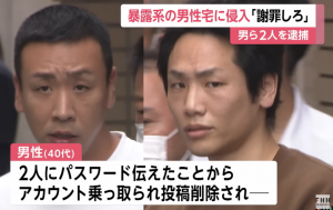 容疑者2人は目出し帽を被り、1階の窓ガラスを破って東京都葛飾区内の被害者の一戸建て自宅に侵入。寝ていた被害者に暴行を加えた上、投稿につき謝罪を強要。