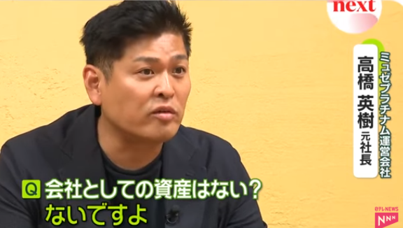 同社に関しては5月16日、元従業員などの債権者が東京地裁に破産申立て。これに対し、高橋英樹元代表(冒頭写真)ら経営陣側は6月2日に株主総会を開催し解散。特別清算を目指していたが、裁判所は破産の方を選んだ。