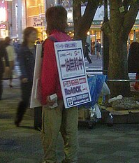 「全国の主要都市の駅前に、日当1万円ほどでサンドイッチマンを立たせ(右写真はイメージ)、クレジットカードのショッピング枠を現金化する商売をしていたんです。