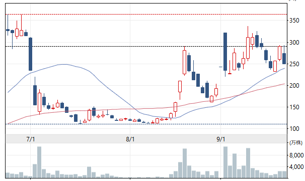 また、田邊勝己弁護士が代表取締役を務める「THE WHY HOW DO COMPANY」(旧名「アクロディア」。3823。東証スタンダード。東京都新宿区)にも新たな動きが。9月18日にIRを3本発表。その日のPTSでは大幅高となった。