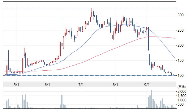 このところ毎回取り上げている「ジェリービーンズグループ」(3070。東証グロース。旧アマガサ)は先週も連日、増資分と思われる売りが続いていたようだ(冒頭写真=株価チャート)。しかし、1日の売却株数がそれほど多くないため、日銀のETF売却同様、相当の日数がかかりそうだ。急落はなくても、上昇は厳しいのが現状だろう。