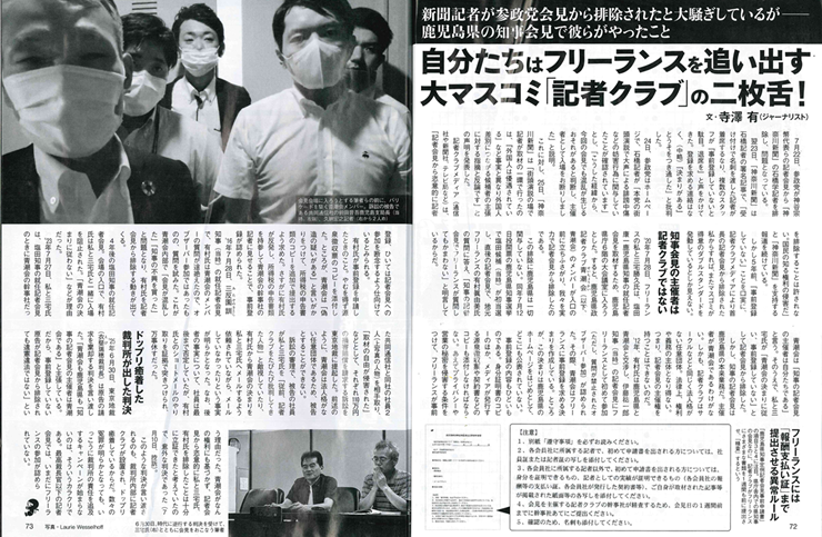 「記者クラブ制度」の問題と、にも拘わらずそれを擁護する裁判所の露骨な姿勢が如実に現れたケースと思われる。本紙・山岡が忌憚なく寺澤氏に質問した。(写真は『FLASH』9月2日号記事。こちらは10月3日配信予定)
