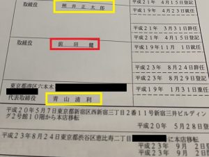 海外サーバーを使い、かつ頻繁にサーバーを替えることなどから、結局、神奈川県警は逮捕を断念したが、発信者情報開示請求により、発信元サーバーの契約者として、青山服役囚が代表をしていた会社の元役員で、その後、エンパワーに在籍していた者(暴力団とも接点)、その妻も契約者だったことが判明していることを、本紙では以前、詳しく報じている。(横写真=青山が以前、代表をしていた「a-sense」なる会社謄本の役員欄)
