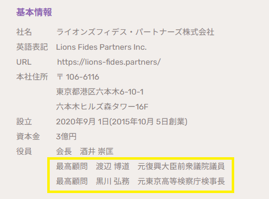 このライオンズフィデス・パートナーズ、資本金も3億円と多く、リッパな会社かと思いきや、昔、上場していたからで、それを実質、乗っ取って、社名変更を繰り返し、酒井氏、自分が実刑を食らった会社を未だ使っているだけのことなのだ。