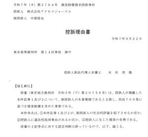 控訴理由書を出したのが今年9月のことで、第1回口頭弁論期日は12月4日午後2時30分から(ただしウェブ会議。事件番号は令和7年(ネ)第3784号)。