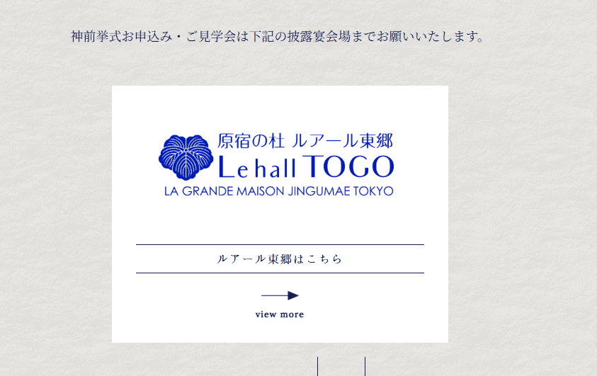 ところが、内紛を裏づけるように、東郷神社のHPを見てみると、神前挙式の申し込みは東郷記念館(東日)ではなく、「ルアール東郷」へとの案内(右写真)。