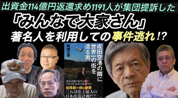 本紙アクセスジャーナルYouTube版では、3週間ほど前、峯岸一氏をインタビューし、実質、経営破綻したといっていい不動産投資商品「みんなで大家さん」の販売会社「共生バンク」の柳瀬公孝会長が発売した成田地区に関する自著につき、ジャーナリストの田原総一朗氏が帯で推薦しているが、それは評論家の佐高信氏が紹介した結果、旨の発言を紹介した。