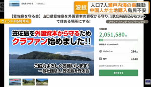 なお、この間、一般社団法人「笠佐島を守る会」が発足。また、12月に入ってからは島を買い戻すべくクラウドファンデイングで資金を募っている。