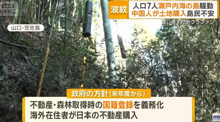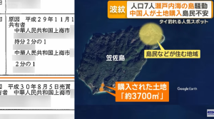 今年7~8月にかけて「産経」(7月26日)、フジTV(「サン!シャイン」。7月30日)、日テレ(「ミヤネ屋」8月8日)などでの瀬戸内海の笠佐島(山口県)の土地の一部を中国人が買っていた件に関する報道を契機に、わが国の安全保障上重要地に関しては外国人に対してはもっと規制強化すべきだとの声が高まっている。