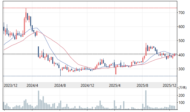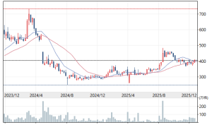 「じもとホールディングス」(7161。東証スタンダード。仙台市青葉区)は傘下に仙台銀行、山形市のきらやか銀行がある(12年に統合。SBIHDが筆頭株主)。銀行株はメガバンクから地銀までこの2年間で大幅高したが、じもとHDは真逆で、この2年間で株価は大幅安したままだ(冒頭写真)。