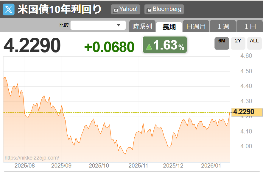 (2)米国の10年債国債の金利が4.2%台に上昇してきた。