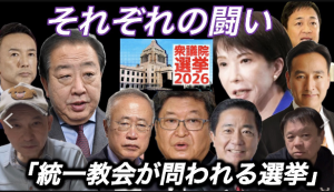 具体的には本紙徹底追及の実弟が詐欺疑惑の「国民民主」玉木雄一郎代表→「自民党」高市首相→「中道革新連合」有田芳生議員(野田党首の要請で、萩生田光一氏の東京24区から東北比例区に回り、高市氏他2名自民党候補者を徹底攻撃)→岸信千世候補(山口2区。公明離反で、自民候補落選の典型?)→「令和新選組」山本太郎代表→新宿一区の順で、本紙・山岡が私見を言いたい放題。(*ココをクリックすれば観れます。無料)
