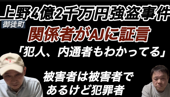 1本目は、連日、報じられている上野4・2億強盗事件に関して。