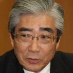 同氏は市議会で亀山紘市長(下右側写真。当時)にこの疑惑=官製談合、水増し工事、架空工事=を質し、内部文書の開示を求めるなどしたが、市長をはじめ復興部長はあやふやな答弁に終始し真面目な答弁(回答)は皆無だった。