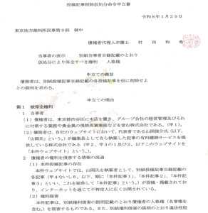 本紙は記事削除の仮処分命令申立を「UNBANKED」(旧「第一商品」。8746。東証スタンダード。安達哲也代表取締役。東京都渋谷区)から東京地裁にされた。