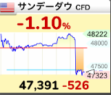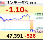 ナスダック100指数は25,116Pと、前稿比+1,071P高(※前稿比+912→▲765→▲483→▲262→▲317→▲52→+279→▲343→▲476→▲53→+76→+237→+560→▲140)であった。※最高値は2025年10月29日26,182P。2025年4月7日に16,542ドルが直近最安値。