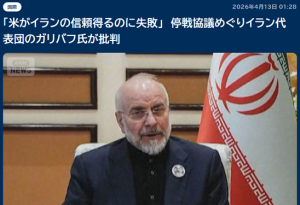 先週は、米国とイランがとりあえずの停戦(2週間なので4月22日まで)に合意し、週末にかけて終戦に向けた対面協議をしたものの、当たり前ではあるものの具体的な進展はなく、頼みの綱のバンス副大統領は協議を止め米国に帰った、と報道された。当然であるが「核兵器製造をやめろ」、という米国側の条件をイランは受け入れるわけがない。そうなると日曜日現在の、原油先物は急騰し、サンデーダウは下落幅が大きくなる。