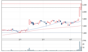 その他、鉄骨・橋梁の大手「駒井ハルテック」(5915。東証スタンダード。東京都台東区)につき、シンガポールの投資家ソン・ユウ・ニン氏が4月8日、「大量保有報告書」を提出(5・02%)。「建設的な対話を通じて企業価値の向上を図る」とのこと。過去に同氏は「玉井商船」(9127。東証スタンダード。東京都港区)に介入し長期で大幅高となったことから、駒井ハルテックも行方を見守りたい。玉井商船は日軽金のアルミニウム原料船や全農向け穀物輸送が柱。
