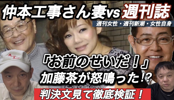 1本は、今年3月に一審判決が出たドリフターズ・仲本工事の妻(三代純歌)VS週刊誌の名誉毀損訴訟の件。