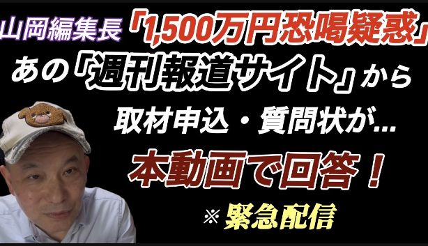 1本は、本紙・山岡が1500万円恐喝したとして、『週刊報道サイト』編集長を名乗る自称ジャーナリストの佐藤昇氏が質問状を送りつけて来た。