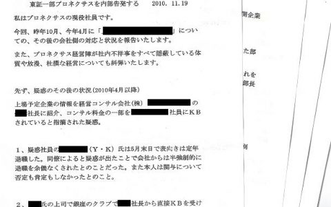 東証1部「プロネクサス」に関する告発文書が登場(1)