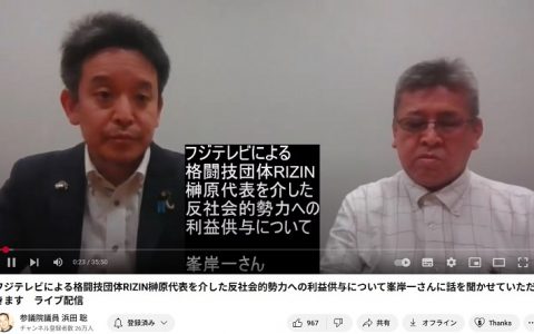 浜田聡参議院議員、本紙YouTube版「フジTVと反社」取り上げ、告発者と対談。総務省に問い合わせも