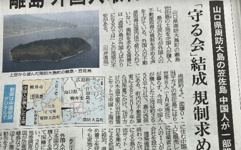 中国人「笠佐島」購入問題――取得中国人と設立の共同会社を解散!?